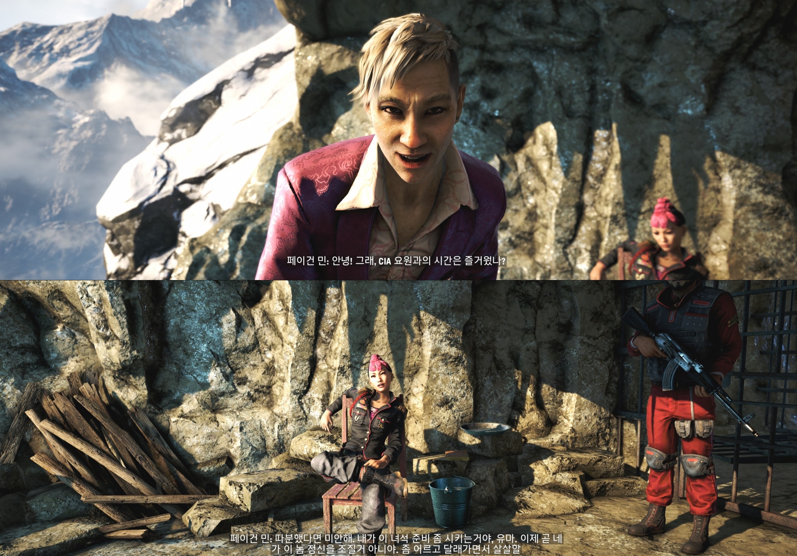 4천왕으로 구성되어있는데, 적들 역시 임팩트 없이 사망한다.(페이건 민, 유마 라우, 누르 나자르, 폴 하몬) 보스전 같은것도 없더라ㅋ 파크라이 시리즈는 이번이 처음. FPS 오랜만이라서 마커 지우면서 신나게 플레이했는데... 스토리가 좀 심심함. 난이도 쉬움으로 플레이했고, 메인스토리도 짧은 게임인데, 수집요소, 업글 등 이것저것 다 건드리다 보니까 플탐이 거의 30시간 찍혔다..