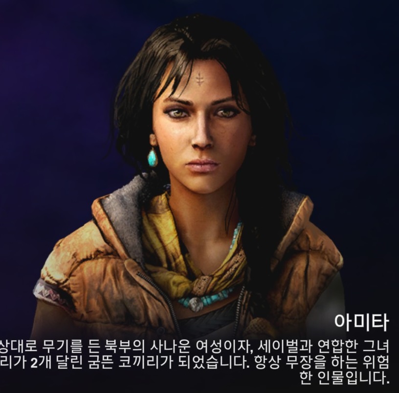 아미타는 처음에 이방인인 에이제이에게 차가웠지만, 주인공이 그녀를 도와주자, 조금씩 친밀한 모습을 보여줌. (이제와서 돌이켜보면 아미타는 골든패스를 장악하기위해 주인공을 이용한것에 불과했음ㅋㅋㅋㅋ)