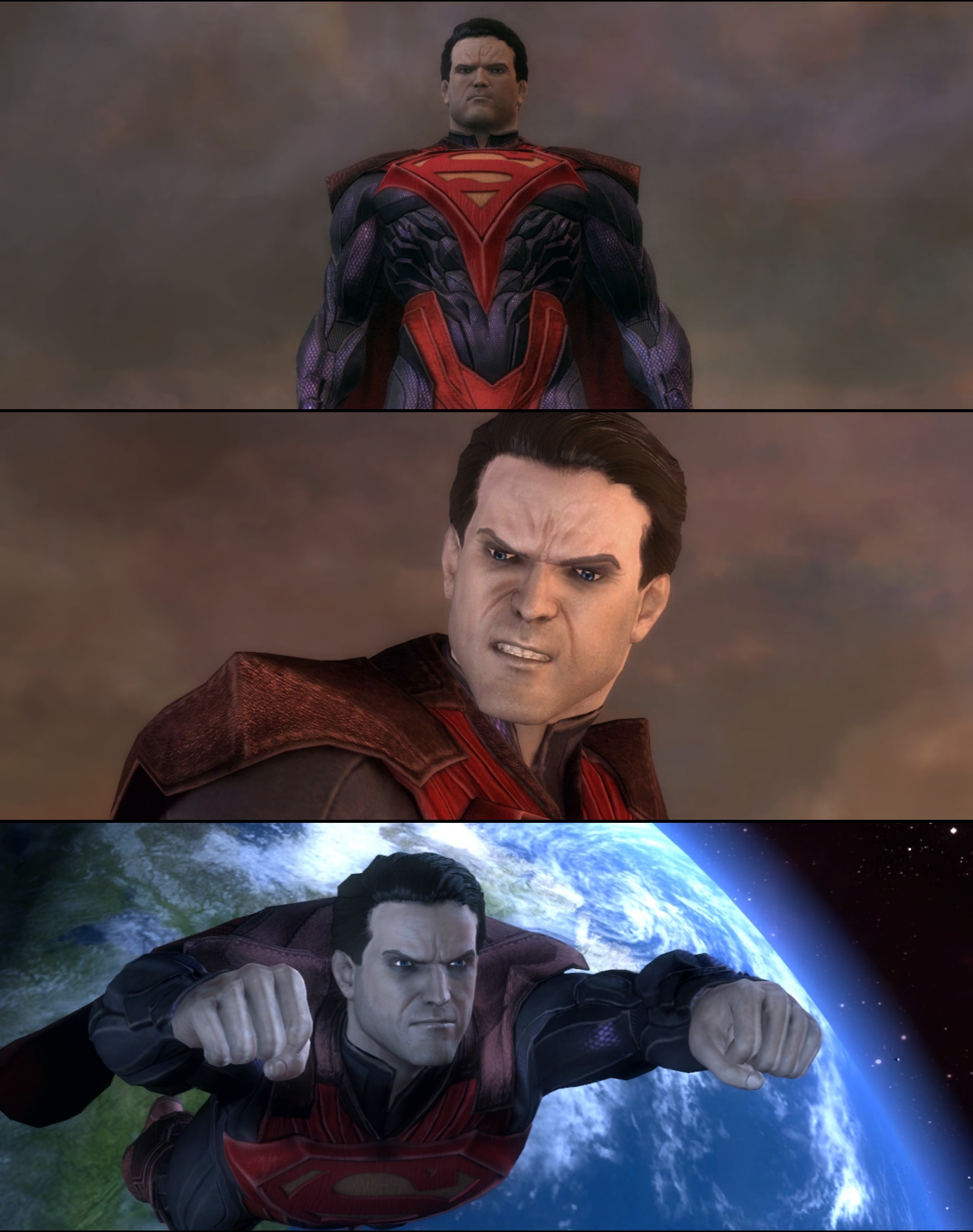조커의 함정에 빠져 임신한 아내 로이스 레인을 살해하고, 절망에 빠져 독재자가 된 슈퍼맨.