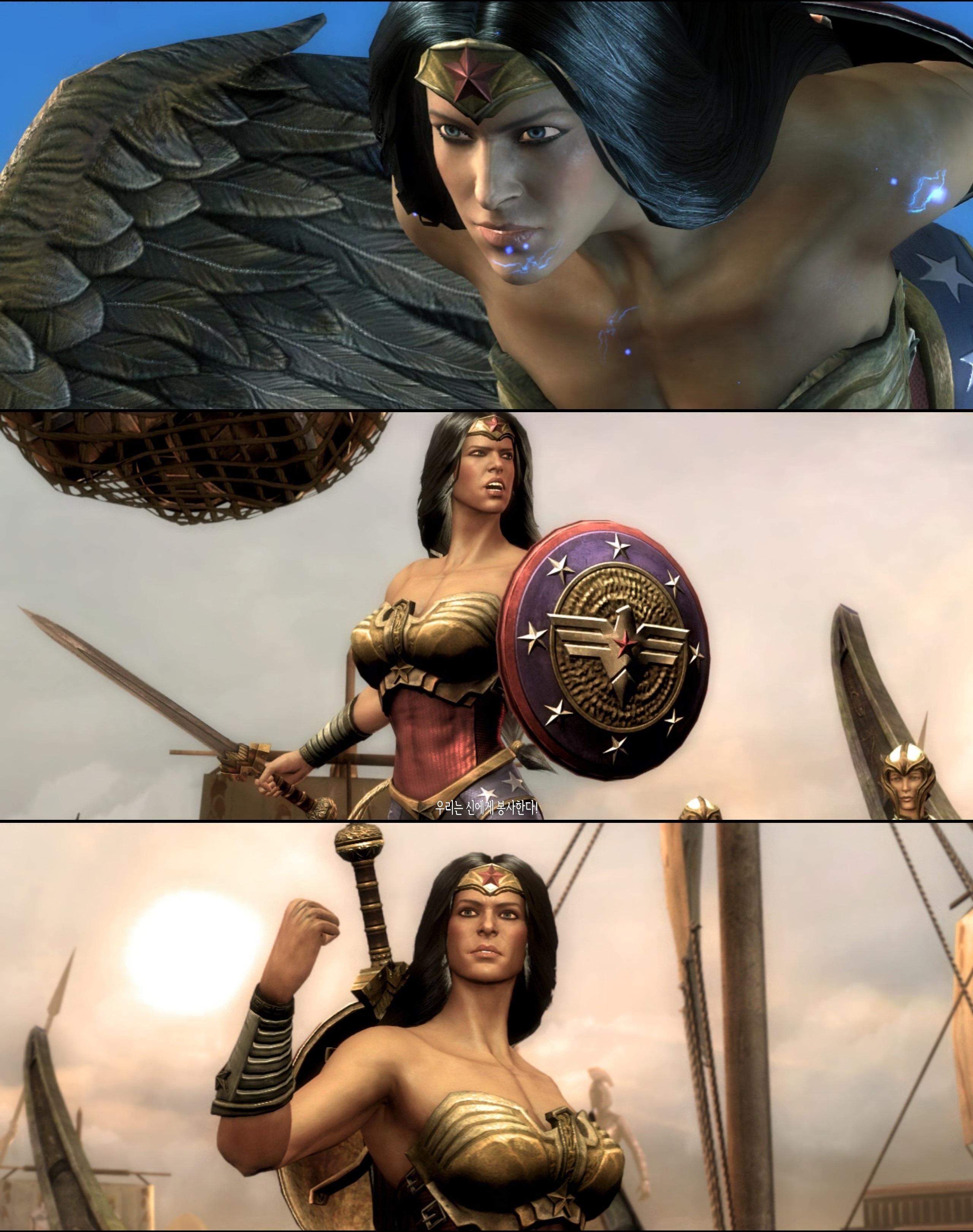 원더우먼(프라임): 폭주하는 레짐 원더우먼을 제압하고 구속. 아마존들을 데리고 레짐 군대와 전투.