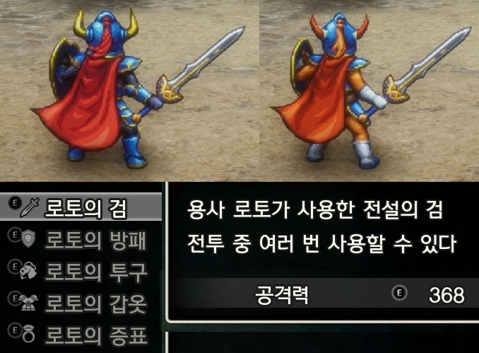2. 로토의 갑옷: 루비스탑 4층에서 입수한 빛의 갑옷이 로토의 갑옷이 된다.